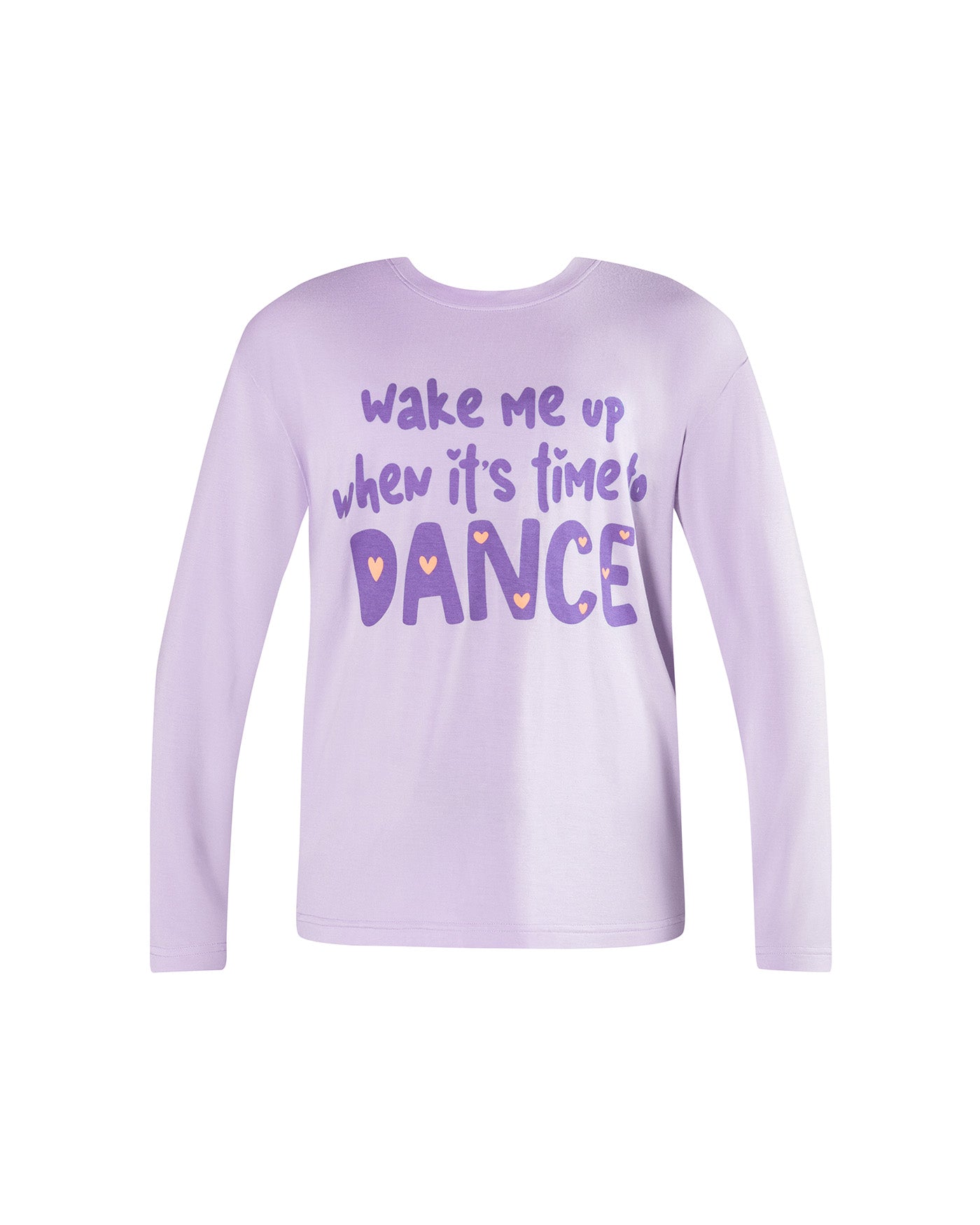 • Relaxed-fit 3/4 sleeve top with ‘Wake Me Up When It’s Time to Dance’ print—perfect for passionate dancers
